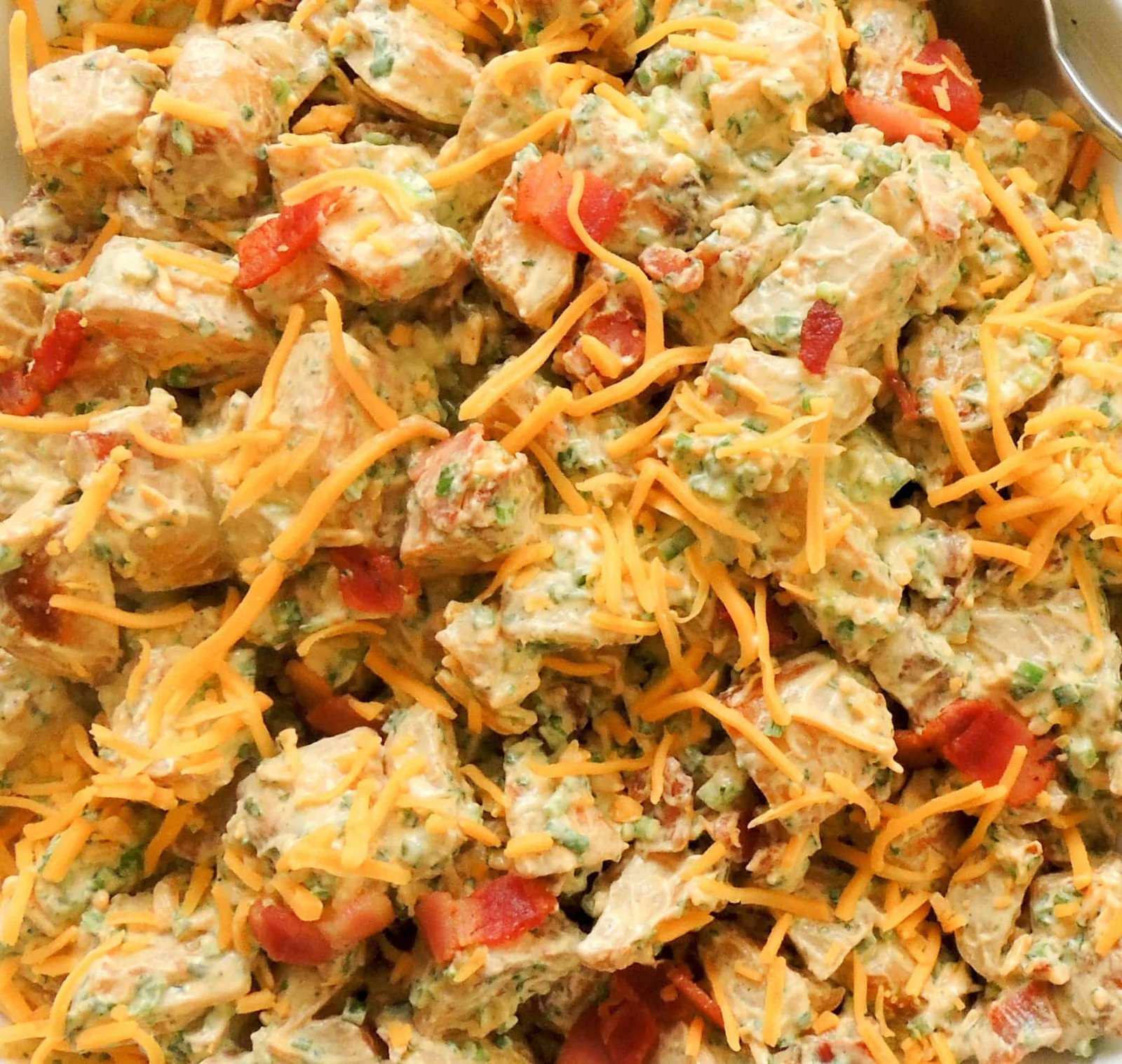 This potato salad looks divine!! Cheese and bacon? Yes please! Love the addition of the cilantro too (yum!). I'll definitely be making this over the weekend.