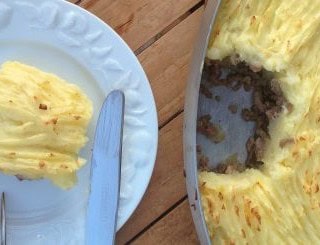 I absolutely love mashed potatoes and shephard's pie, so this dish looks perfect to me! I love your sweet tradition of drawing shapes on top with your girls too!