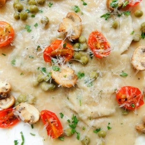 • Ponga el agua salada a hervir. Añadir raviolis. Reduzca el fuego a fuego lento; Cocine por 1-2 minutos o hasta que los raviolis floten a la superficie y estén tiernos al tacto. Escurra todo el liquido. Poner los raviolis en la salsa y calentar un poco, cubrir con la salsa. Servir y disfrutar!