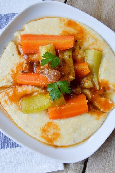 • Sirva en tazones, coloque la polenta y luego los vegetales por encima. Buen provecho!