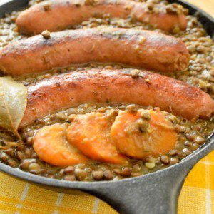 Lentejas de Puy con salchichas