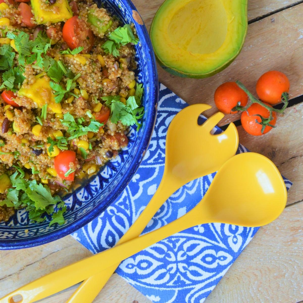 Chill: cover and refrigerate minimum 2 hours before serving. The dressing melds into the quinoa and beans during this time and the flavor deepens significantly.